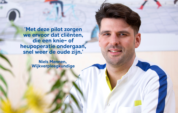 Cliënten die een knie- of heupoperatie ondergaan worden relatief snel naar huis gestuurd zonder goede voorbereidingen op het nazorgtraject thuis. Dit vertraagt het herstelproces. Niels Mennen (wijkverpleegkundige ZuidZorg) en Christa van Doesburg (verpleegkundig specialist Orthopedie in het Máxima MC) vonden daarom dat dit beter kon!