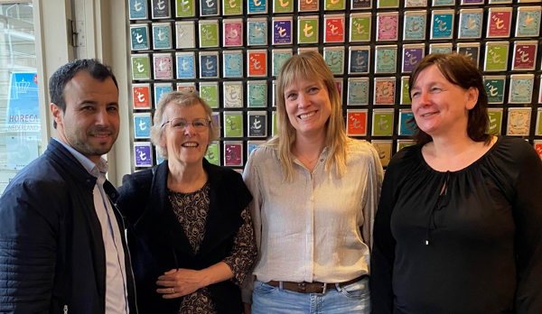 Van links naar rechts: Karim Ajouaou van Omnia (genomineerde onderaannemer), Annet van Straaten van ZuidZorg Thuiscoaching (penvoerder), Hanneke Hermkens van Zorgmed (samenwerkingspartner) en Monique Netten van het Leger des Heils (genomineerde onderaannemer).